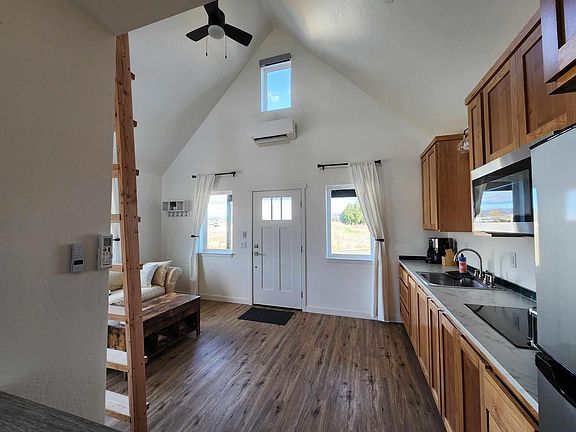 Fully furnished cottage constructed in 2022 on landlords 4-acre property. It is 400 sq feet with an additional loft for ample storage. Fully fenced and private back yard with artificial grass for easy upkeep. Unit has an efficient mini split heating and air system. Within walking distance to public transportation. Only a 3-minute drive to stores, restaurants, and even a movie theater. The kitchen has solid wood cabinets and stainless steel appliances. Washer and dryer in unit for convivence. All utilities are included: water, electric, internet, sewer, and trash. Parking includes spaces for two vehicles. Pets may be considered on a case-by-case basis. Landlord pays all utilities: water, electric, sewer, internet, and trash. A P. O. Box is required. The lease is 6 months and then changes to month to month after that time. Tenant is responsible for maintenance of fenced in backyard area with artificial grass.
