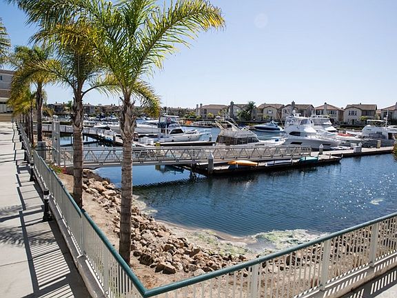 This 2 bedroom + 2.5 baths Top floor Corner Unit with Vaulted Ceilings and Courtyard Views, Open floor plan with tile flooring throughout living area, living room with fireplace, newly custom-built cabinet for flat screen television, custom window blinds, dining area, great size kitchen with beautiful cabinetry and granite countertops, & stainless steel appliances. Guest bedroom with built-in closet organizers, custom blinds, & hardwood flooring. Master bedroom with walk-in closet, built-in closet organizers, plantation shutters, hardwood flooring, & door out to the balcony. Newly custom built office with beautiful cabinetry makes it easier to work from home. Large balcony with Newly installed remote controlled Awning, beautiful views of Courtyard & treetops, great size for entertaining, and even comes with a water spout. Secured parking with additional storage space, elevator, spa, walking distance to the Marina, beaches, shopping, restaurants, and much more...Show & sell!