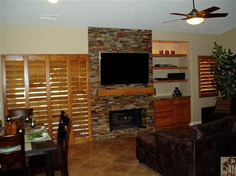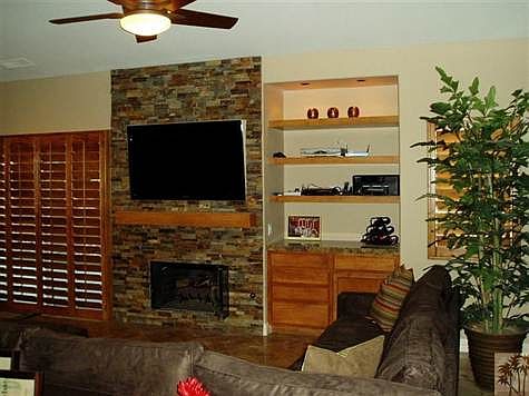 Unbelievable value - Central location. Stunning 3 bed/2 bath home with low maint landscaping, newly painted exterior, stacked stone trim and mailbox, boasting loads of curb appeal. Home is on a pie shaped lot affording a generous professionally landscaped outdoor living area featuring beautiful pebbletech salt water pool & spa w/quartzite spillway, fire pit, BBQ and dining area. Outdoor speakers, BBQ, and furniture in this area stay. Inside the home find high end finishes like diagonal set Travertine flooring, tumbled Travertine shower & tub surround, maple cabinets, gorgeous granite counters, stainless appliances including washer & dryer, custom island & media cabinet, wood shutters, new carpet, stacked stone fireplace w/flat screen TV & surround speaker system. Additionally, dining area, master and guest bedrooms are furnished. Enjoy energy savings with 26 solar panels on roof, ceiling fans throughout, and variable speed pump on pool. This dream home is truly a must have Brokered And Advertised By: Windermere Real Estate Listing Agent: Lynn M. Jenson