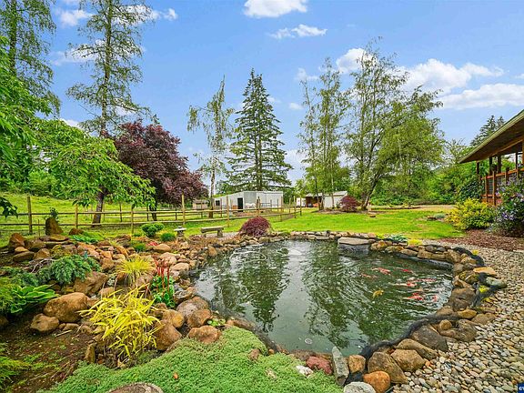 1.38 acres, view of timber covered mountain, country living. Built in 1988, approx 1,782 SF, 3 bedrooms, 2 bathrooms, high speed internet, home updated 2021-2023, cedar covered beams, deck panels, bathtub surround, new roof in 2024. Pasture & shop, fenced pasture, barn (2 stables)/shop. Pond with Koi. Privacy.