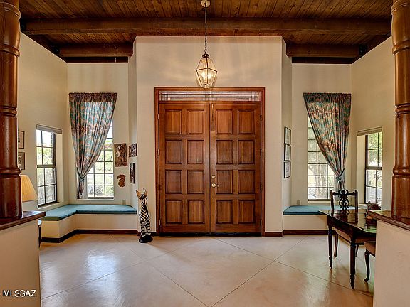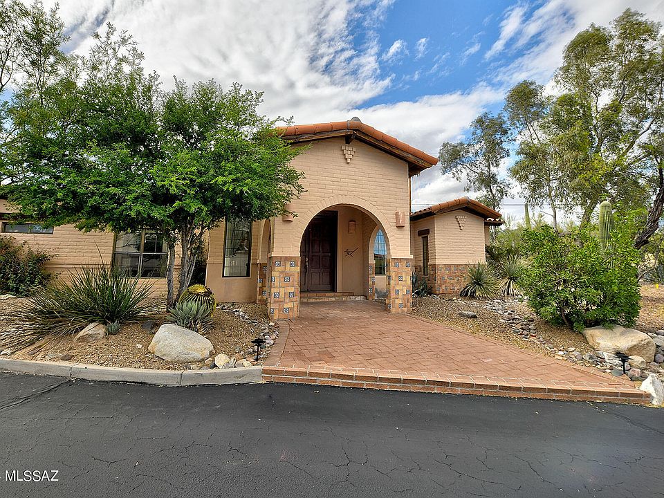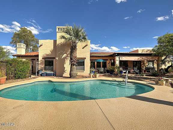Welcome to your dream home nestled in a gated community offering breathtaking views of the majestic Catalina Mountains and the twinkling city lights. You will be captivated from the moment you step through the door of this charming abode. Upon entry, be prepared to be greeted by soaring 9+ foot high wood beamed ceilings that exude a sense of grandeur and warmth. The stunning concrete overlay floors add a touch of modern elegance to the space, creating a perfect balance of sophistication and comfort. This meticulously designed home boasts a desirable split floor plan, offering both privacy and functionality. The Owner's Suite is a sanctuary, featuring a cozy fireplace for those chilly evenings, two walk-in closets for ample storage, dual vanities for convenience, and a separate garden tub and shower for indulgent relaxation. Step outside into your own private oasis, where the gorgeous backyard meets serene open space, providing uninterrupted views of the picturesque surroundings. Whether you're lounging by the inviting pool or dining alfresco under the shade of the lovely covered patio, every moment spent here is a true delight. Situated in a private enclave of just 46 homes, this property offers the perfect blend of exclusivity and community. With a 2-car garage and additional driveway parking, you'll never have to worry about accommodation for your vehicles or guests. With views that will leave you awestruck, Foothills to explore, and charm beyond imagination, this home offers the quintessential Arizona lifestyle you've been dreaming of. Don't miss your chance to make this slice of paradise your own. Schedule a viewing today and prepare to fall in love.