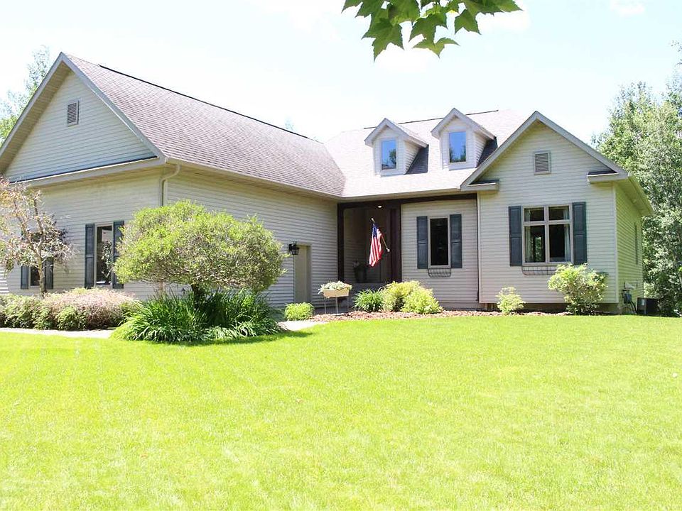 Nestled in the trees you will find this great Hermantown home! Cathedral entry welcomes you in to enjoy the office area, walk in closet, dining room and an inviting eat in kitchen w/ granite, stainless appliances and a bfast bar. Master bedroom on this level with walk in closet and a full bath w/ 2 sinks, jetted tub and tiled walk in shower. Another bedroom, full bath and a laundry room complete this level. Lower level has great entertaining area with a 25 x 24 family room, 2 spacious bedrooms, another full bath and 2 huge storage rooms. Lower level also has a walk out to the newer pergola and paver patio which is super cool! Gorgeous yard, 2 car attached garage, central air AND located walking distance to the schools! See it today!