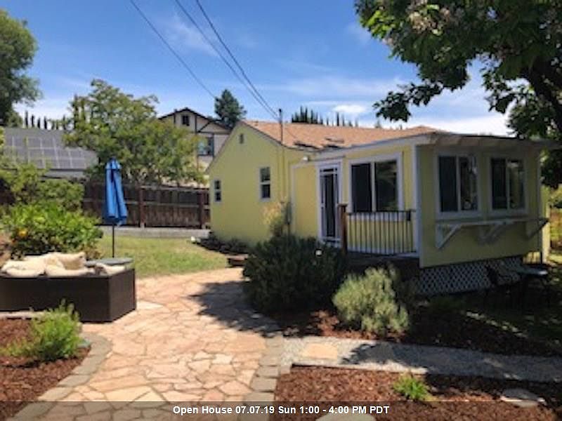 Charming cottage, two bedroom bungalow with original, refinished hardwood floors, newer paint, recessed lighting, central heating with smart thermostat, new vanity and mirror in bathroom,some new floors, new deck in front yard, new french drain, fresh landscaping,spacious yard has fruit trees, new fence, and a newer deck. Lots of natural light, Privacy galore on this quiet large lot. Great location, Award winning Valley School District, freeways and Bart. Flag lot very desirable.tankless water heater! Alternative to condominium.