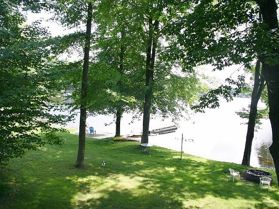 Wall Lake 3400 sq. ft., 4 bedroom home with 166' of lake frontage! Entire main floor remodeled. Home has open floor plan and vaulted ceilings, gas fireplace, surround sound and new hardwood and carpet flooring thru out. Clearstory windows and skylights allow natural light. Gourmet kitchen has new counter tops and center island with plenty of cabinet space. Walkout lower level has 3 bedrooms, a large rec room, large full bath and finished with hardwood floors. Large master suite has vaulted ceilings, clearstory windows, sky light and private jetted tub in master bath. Large 3-season porch with beautiful views of Wall Lake. Property also has a 30x60 pole barn with full upstairs for all your lake toys and/or workshop. Centrally located between Grand Rapids and Kalamazoo. Wall Lake is 530 Acre All Sports Lake