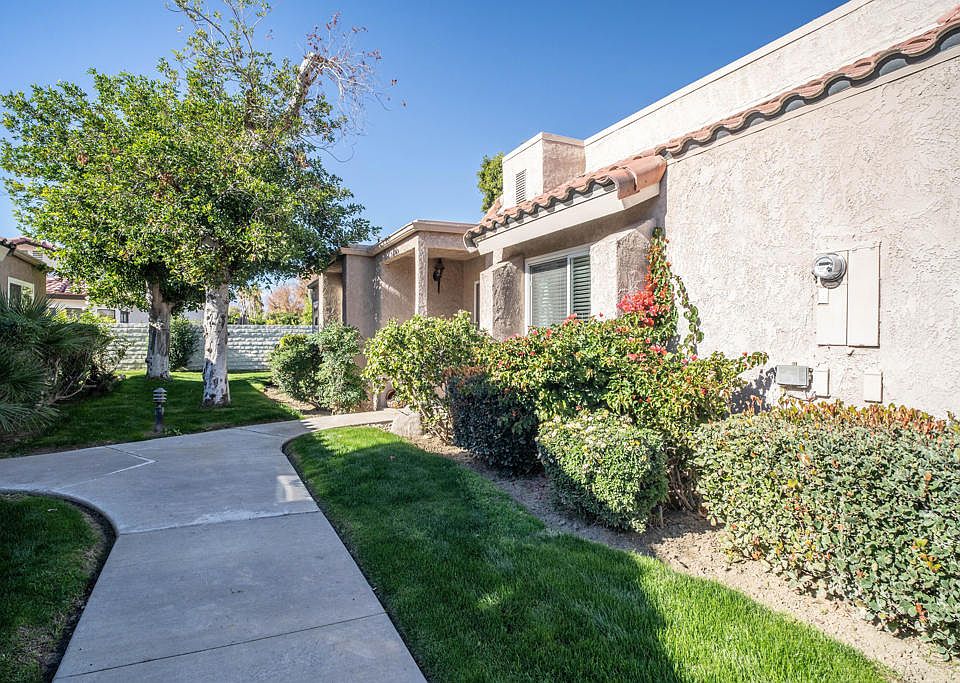 MAJOR PRICE REDUCTION! This 2 bedroom, 2 bath turnkey-furnished Valley Palms condo is the perfect option for those looking for a great central location in a quaint and quiet, gated community! This unit features vaulted ceilings, an inviting floorplan with open living/dining room, a spacious primary suite with dual vanities, updated guest bath plus an attached 2-car garage with laundry. The well-equipped kitchen offers granite counter tops, stainless steel appliances, well-thought-out storage and a breakfast bar. The covered patio features a BBQ and offers south/western mountain views to enjoy the incredible sunsets! Valley Palms low HOA fees include exterior landscape maintenance, basic cable and internet plus 2 community swimming pools and spa(s), tennis and pickleball (sport) courts and more! Its prime location puts it in close proximity to excellent schools and a host of attractions, including the Indian Wells Tennis Garden, El Paseo Shopping & Dining, and Acrisure Arena. Whether you're looking for an ideal investment property or the perfect weekend getaway, Valley Palms is the answer.