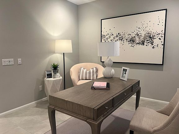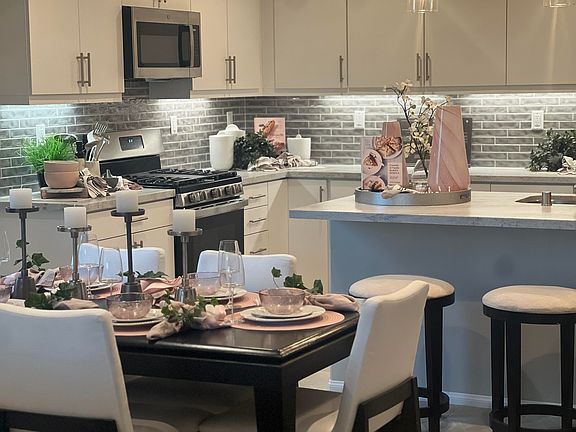 This impressive model home offers a popular open floor plan with the backyard already complete with an extended covered patio ready for you to enjoy! In the kitchen, you will find our gorgeous natural stone countertops with full backsplash along with pendant lights accenting our large center island. Across the hall, you will find the mudroom with additional cabinets leading into the two bedrooms and a 2nd bathroom with wall-tiled bathtub. The master suite offers a private bathroom with dual sinks, a walk-in wall-tiled shower and a closet across. This exquisite home featuring stone tiled floors and carpet also includes refrigerator, washer/dryer, rain gutters, ceiling fans, recessed lights and speakers throughout along with custom painted walls. This home includes 9 solar panels, structured wiring & enhanced security package. We invite you to come in and look at your new home!