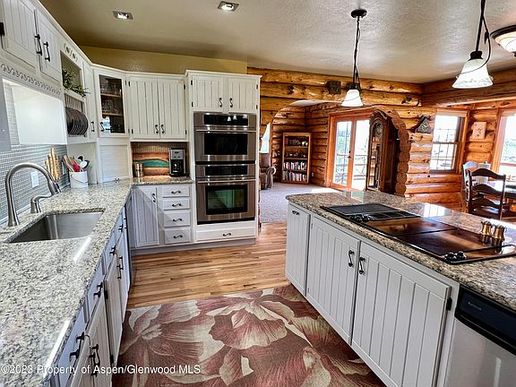 Quite possibly the most stunning property in Rio Blanco County, this 6.6 acre property is just moments south of Meeker, in close proximity to the golf course. Built in 1993, this log home has been meticulously maintained and updated throughout the years. The house consists of three levels, heated by propane and some electric, the main level showcases a beautiful, updated kitchen and dining space, along with living room, bedroom and powder room. The primary suite encompasses the entire upper level and the lower level includes two bedrooms and great entertaining space - leading out to the hot tub and fenced yard. A detached 30'x40' barn/shop has power and concrete floor, an RV power hook-up is along the asphalted driveway. Mesa View Estates provides domestic and irrigation water.