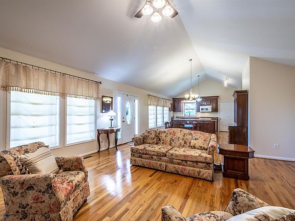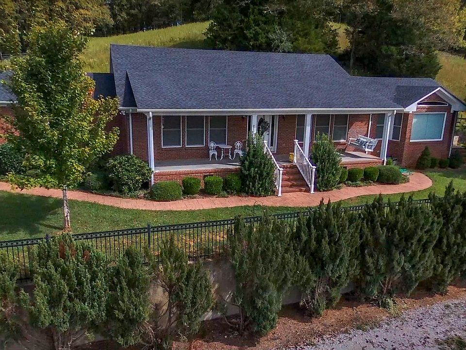 Private yet convenient, and with an AMAZING VIEW. This gorgeous custom built brick home sits back off the road. Has a 33x40 unfinished basement, 2 fireplaces, hardwood, granite, 3 garages (1 attached main level, 1 basement, and 1 detached), blacktop driveway, alarm, buried 200gal propane tank, kitchen remodeled, new windows & furnace