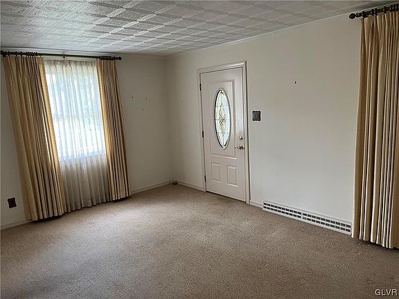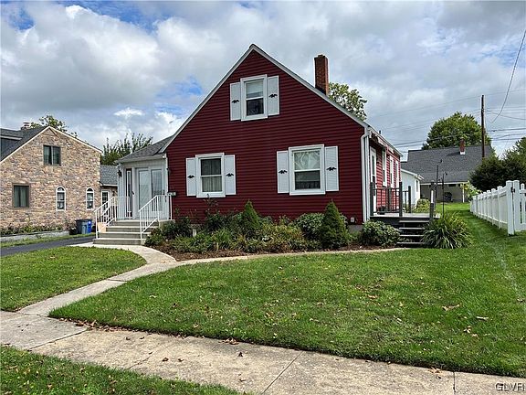Adorable cape close to the Saucon Valley School campus, Dimmick park, swimming pool and library. The first floor features a sunroom which leads to living room, eat in kitchen with built in china cabinet, pantry and Pergo flooring. Just off the kitchen is a 12x6 wooden deck leading to a nice sized yard. 2 bedrooms and full tile bath compliment the first floor. Second floor has 2 additional bedrooms. Hardwood floors throughout. Lower level has a family room with dry bar and stools. Separate area with laundry, workshop shower, and half bath. Newer roof, windows and hot water heater. Detached garage with workshop. Well maintained by the original owners. Home is being sold in as is condition. Seller to provide clear sidewalk certification from Hellertown borough.