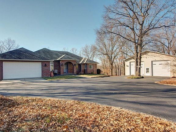 OPEN HOUSE CANCELED 3/1/15. Enjoy life in the Ozarks in this wonderful walkout basement home situated on 3.3 mostly level acres overlooking the woods with RV garage. This well-kept 4 bedroom 3 bath home offers very spacious rooms with a clean lines, modern baths, a spa tub in the beautiful master suite and a tasteful, Pottery-Barn style decor throughout.The home boasts two full kitchens, making this home perfect for multi-generational families. The main kitchen features beautiful cabinetry, granite counters, stainless appliances, and hardwood floors in the breakfast nook and formal dining room. There are two gas-log and one wood-burning fireplaces and energy efficient ICF construction. The exterior walls are insulated concrete and nearly 12' thick with the total utility bills averaging