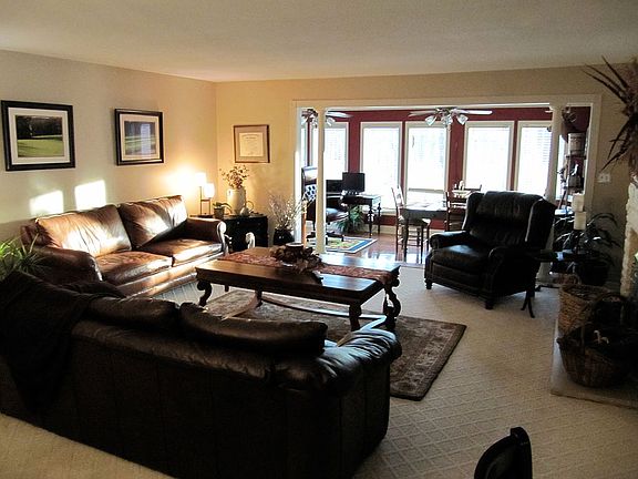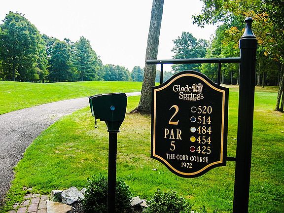This approximately 2398 square foot villa is located at 439 Club Circle, Daniels, West Virginia. Situated on the par 5, #2 fairway of the championship Cobb Course in Glade Springs, with only a short wedge shot to the beautiful green. Low maintenance golf villa has nice open floor plan with spacious living/dining area and gas burning fireplace. In 2017 the open patio was converted into a family room with heated flooring. The bright sunroom opens to private views of #2, #3, & #4 holes on the Cobb course. The spacious three bedrooms have their own private baths while the master bedroom features a gorgeous new custom shower. The large garage has enough room for two cars and a golf cart. The property is beautifully landscaped with a large deck facing the golf course for grilling and entertaining.