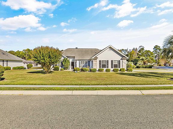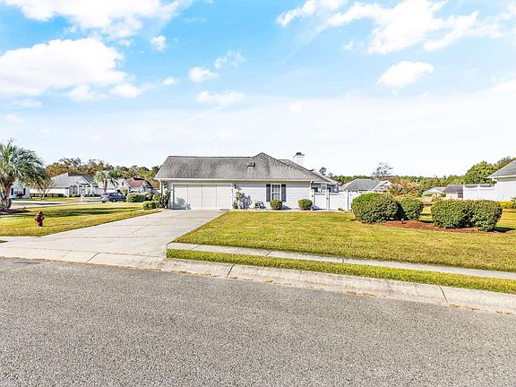 Beautiful 2BR/2BA plus sunroom home situated on a corner lot in a golf community with a gorgeous pond view! Well maintained ranch home with vaulted ceilings in living room and dining room area. Open concept with lots of cabinet space, granite countertops, and newer stainless steel apps in kitchen! Extended sunroom currently used as office that can be used as a third bedroom or even playroom! Primary bedroom with walk in closet and custom walk-in shower. Attached 2 car garage for extra storage! Conveniently located to the beach, shopping, restaurants, and more!