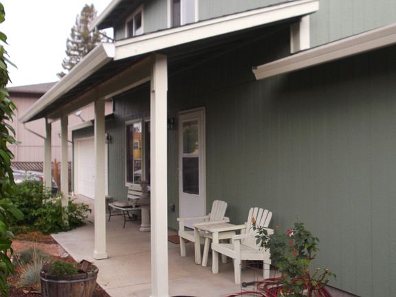 Accepted Offer with Contingencies. Well maintained 'Good Sense' home with waterway in backyard, lots of garden areas, garden shed and private patio. 3 bedrooms and 2 baths split between floors with bonus room upstairs and deep 2 car garage. New chain link fence and exterior paint. Concrete walkways around entire home with asphalt driveway. Mature landscaping with beautiful flowers and fruit trees.
