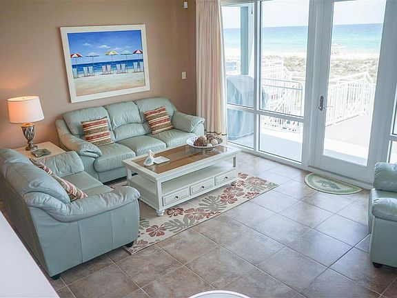Everyone loves Pensacola Beach White Sands Townhomes overlooking Emerald Green Gulf waters. Beautiful views from the gulf to the sound waters. Walk into a large living area and look at the gulf waters invite you home with the large open deck. Steps go down to walk out to the Gulf. The nicely open kitchen showcases a built in wine rack and attractive cabinets, all like brand new appliances and plenty of prep space on the granite countertop. First level of living space features a guest suite, with private balcony with views of the sound and service to a full bath. The foyer has a bonus of built-in book case. Upstairs, the master bedroom is dream with vaulted ceiling, mini loft and built-in cabinets. A private balcony looks out toward the Gulf. The master bath features a granite double vanity and gorgeous oversized shower. A second and third bedroom with both private balconies. The huge ground level garage boast all your needs for cars and beach storage. Extra two assigned outdoor parking spaces for company. This is a second home to the sellers and has never been rented. Model perfect condition uniquely redesigned. Private elevator for convenience. Truly Paradise without having to build and spend $900,000+ for a vacant lot!