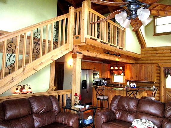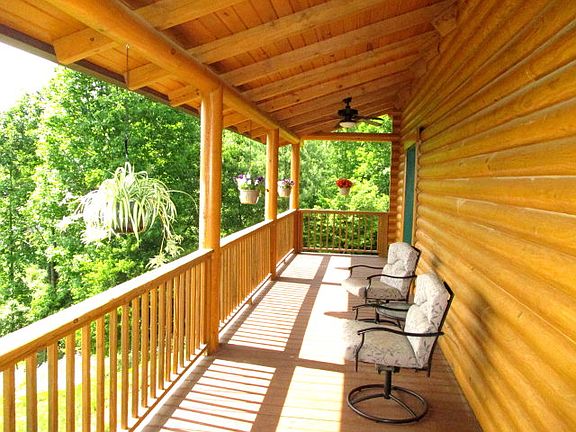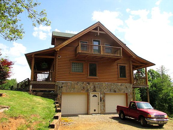 Like New, Gorgoues Log Home with all the upgrades...Granite countertops in kitchen & all vanities. 100 year old Heart Pine T & G vaulted ceilings, hardwood flooring & kitchen cabinets. Spectacular mountain views (sunsets over the mountains views), bedroom and bath on each floor. This is the perfect mountain home! Tiled master bath, large rooms, and many beautiful finishing touches. Close to town, lovely landscaping, covered full length front and back porches, large deck, stone faced fireplace and more! Purchase fully furnished for $399,900.