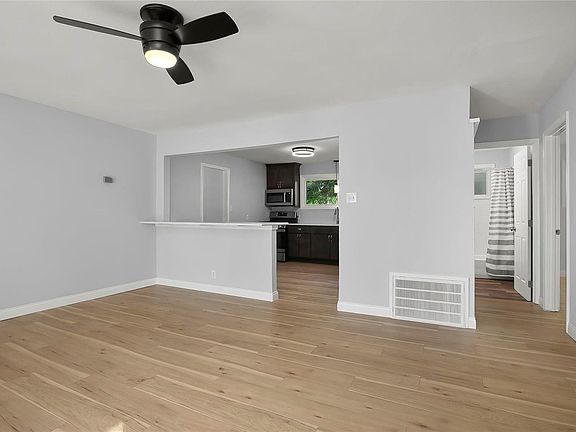 - Features: Floor Covering: Laminate, Wall Covering: None