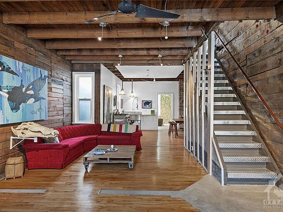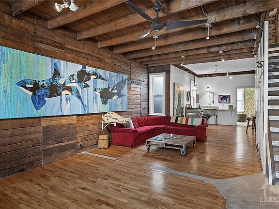 Welcome to this unique townhome that perfectly blends history with modern elements. This red brick row home is located in the heart of Centretown. Owned by one of Ottawa's most treasured artists, this home features four permanent art installations by the artist, adding a distinctive and creative touch throughout. Exposed wood walls and a brick chimney offer a glimpse into the home's historical essence. High ceilings and refinished hardwood floors throughout provide a spacious feel. Poured concrete at the entrance artistically marks where the original walls once stood, celebrating the home's history. The refinished full bath boasts high-end finishes, including a wall-mounted toilet and tile throughout. The mudroom, which also serves as a pantry off the kitchen, adds convenience and practicality. This central location offers walkability to Bank Street’s shops and restaurants. Experience the perfect blend of history, art, and contemporary living in this truly unique Centretown row home.