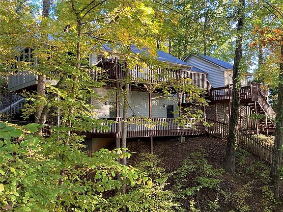 This is what you've waited for! Spectacular custom-built home with Beautiful Natural Light throughout on a deep water lot on the main channel of the Tugaloo at Lake Hartwell in the Foxwood Hills waterfront community. Home Features a Fabulous Outdoor Space with Screened Portch, Western Sunset lake views on a Large Private Lot with low-maintenance landscaping. Views from every room in the house with three bedrooms, two full and one-half baths. Breathtaking lakeside master suite with cathedral ceiling, hardwood floors, walk-in closet, and a walk-in tiled shower. Large open great room with a stack stone fireplace and Oak hardwood floors that flow into a light and bright kitchen all overlooking the sparkling waters of Lake Hartwell. Kitchen with custom cabinetry, granite counters, and hardwood floors. The Walk-out level has 2 guest bedrooms and a full bath overlooking the lake, a lower level living area with fireplace, laundry, and workshop/storage. Theres an Extensive three-level lake-side deck that leads to a gentle slope to the lake. Single Slip Covered Boat Dock! All of this and located just minutes from I-85, Westminster, and Seneca. Must see this spectacular sunset lot!