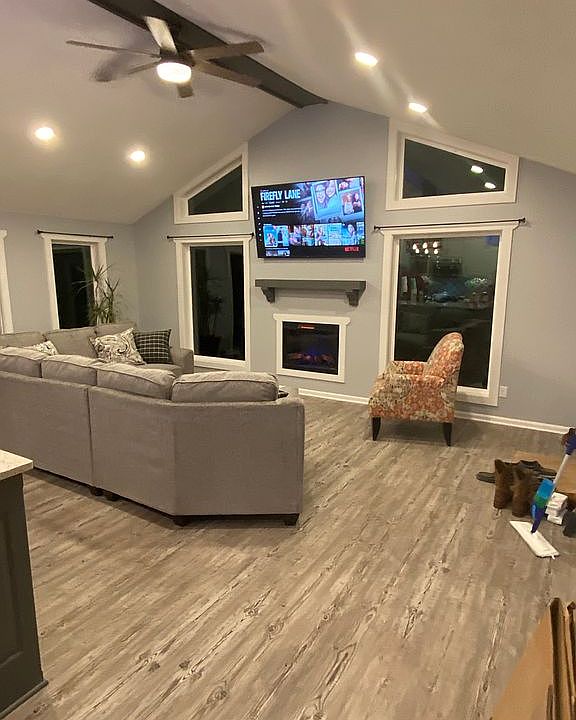Lake life! This meticulously cared for three bedroom, two bath ranch home is move-in ready! No need to build when you can get a 'like new' home with one of the best floor plans! Owner has updated this home from top to bottom with a new spacious custom kitchen with quartz countertops, a nice 4' x 8' center island, plenty of cabinets with 2 under cabinet appliance lifts, and a nice pantry. Stainless steel kitchen appliances included. All new windows, roof, siding, new flooring, HVAC, garage doors and openers, new deck, and all new lighting, Nest thermostat and so much more! The new addition envelops detail and design as you walk into the primary suite designed with soaring ceilings and a large walk-in closet, large bathroom with double headed shower. Sit back and relax on the enclosed porch or chill at the fire pit. Over 1 acre of privacy and plenty of green space. Plenty of room for parking and all your lake toys. Property has been surveyed.