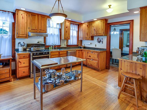 Pristine, Elegant, Classic Colonial with original detailing throughout. This home boasts an oversized kitchen with granite counter , hardwood floors, three bathrooms, large dining and living rooms, original moldings, functioning pocket doors, stained glass windows, and more. Very well maintained with brand new hot water heater. Freshly painted. Fenced yard, screened porches. Move in condition. A must see!