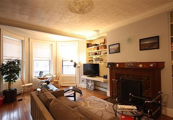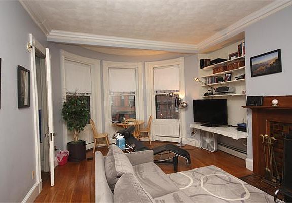 Back Bay Living Bay Windows Fireplace (Decorative) Spacious living room Hardwood Floors High Ceiling Laundry in Building all white appliances dishwasher heat and hot water included