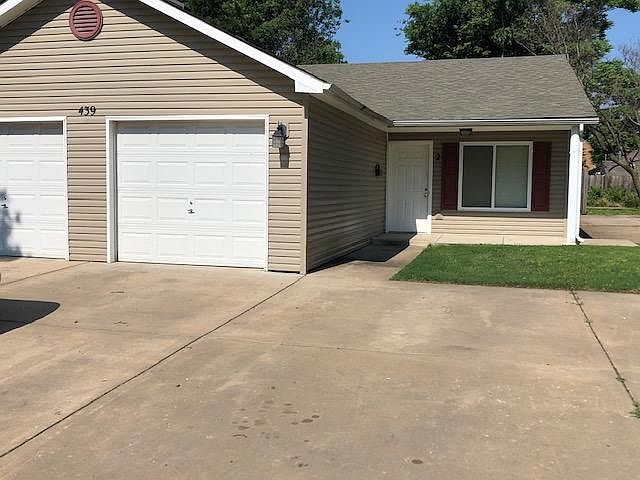 Nice three bedroom two bath duplex in West Wichita. This home comes with a stove, refrigerator, and dishwasher. It features an open layout with vaulted ceilings, a walk-in master closet, an attached single car garage, and a small fenced in back yard. Tenants are responsible for the electric, water, and trash. The owner takes care of the lawn. For more information or to schedule a showing, please contact Branson Property Management at . Showings are available M-F. Thanks for looking!! Pets are permitted with a refundable pet deposit. 1 year