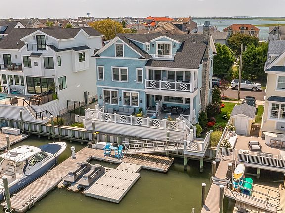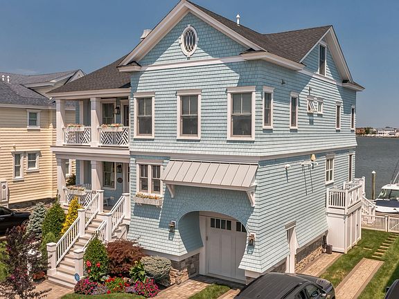 Magnificent bayfront home located at the end of one of Margate's most prestigious Parkway streets. This home has been built with the highest level of craftsmanship and design finishes. Situated at the end of the Lagoon offering spectacular bay and sunset views. Featuring full cedar shingle siding, 5 bedrooms +office, 5 baths with custom marble & tile, elevator, wide plank hardwood flooring throughout, chef's kitchen with wolf range & sub zero refrigerator, living room with wet bar and bay windows looking out to the partially covered deck, large master suite with bay views, newer bulkhead and dock, abundant storage and one car garage at grade. Enjoy relaxing or entertaining on one of the multiple bay side decks. Wonderful opportunity to own your dream home on the bay!