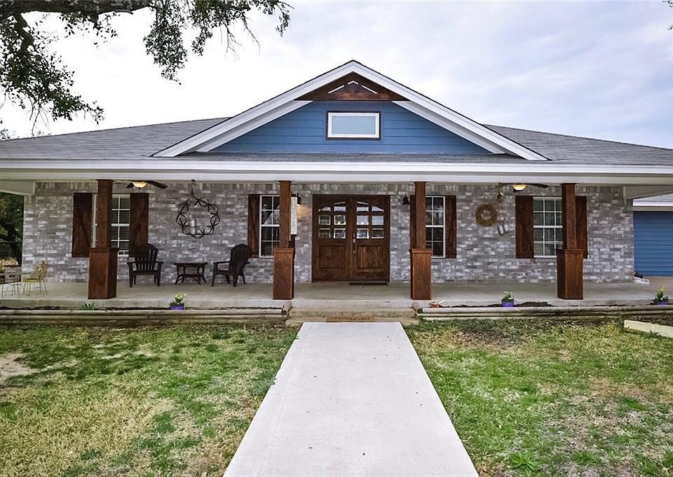 Fully renovated home with custom farmhouse accents on 12 acres of paradise. Sip coffee on your front porch as you watch the sun rise over the fish-stocked pond. Enjoy the tranquil beauty of bluebonnets, irises, daffodils & wildflowers in the spring and summer and the changing colors of red oaks in the fall. Beautiful hardwood floors throughout living room, kitchen & dining room accentuate the open floor plan. Eat-in island with quartz countertop, unique light fixtures, a ceramic farmhouse sink, pot-filler & bead board ceilings. Custom tile work lends character to all baths. 2400 sq ft workshop with electricity & water, Covered RV parking and an additional 36x36 overhang. 15x16 greenhouse or chicken coop on slab