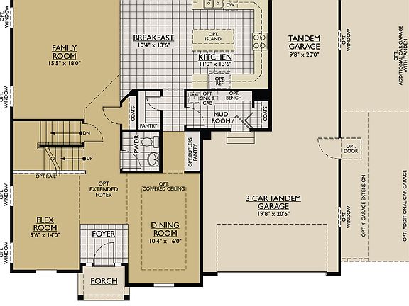 The Jericho II features 4 Bedrooms, 2.5 Bathrooms, a 3 Car Tandem Garage. The foyer opens into a Flex Room and Dining Room before leading you into a spacious Kitchen and Family Room. The vast Master Suite connects to two oversized Walk-in Closets and a dramatic Master Bath with a standing tub.