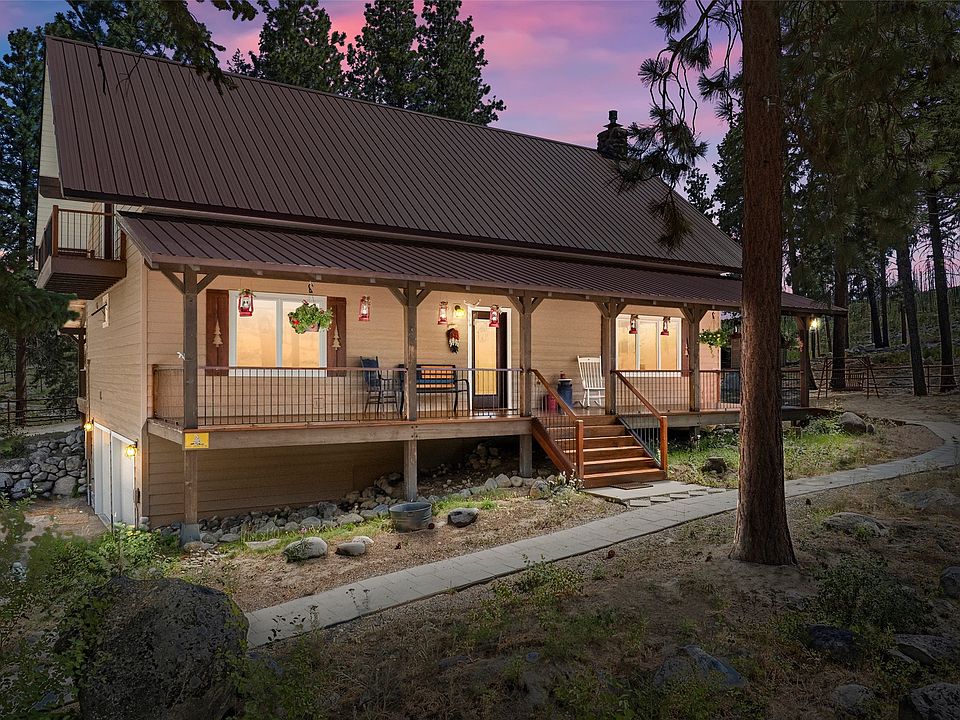Fully remodeled 3 bed/3 bath home on 5 acres with Roaring Lion Creek running through it. Situated on a county-maintained road near Bitterroot National Forest with access to miles of trails. A gated driveway welcomes you to the home where nearly every surface has been updated: flooring, appliances, lighting, paint, heating, decks, and beyond. Equestrian-ready with pipe fencing, round pen, oversized pipe-framed run-in shed with built-in feeders, hay shed, and a feed shed. Don't have horses? Use the outbuildings to suit your needs. A 20 GPM well at 90 ft deep and a separate 17 gpm sprinkler irrigation right off Roaring Lion Creek running through the property can support green pastures and gardens. Mountain + canyon views, mature trees, and a peaceful setting is for full-time living or a weekend getaway. Propane fireplace, metal roof, saltwater hot tub, and quick access to downtown Hamilton, plus it's move-in ready. What more could you want? Furnishings and Kawasaki UTV are negotiable!