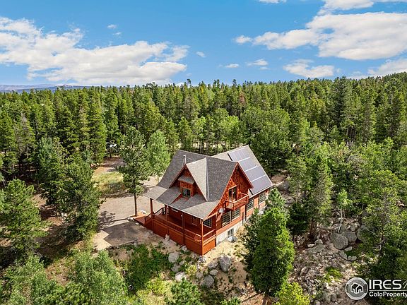 This home offers a thoughtful layout with space to live, work, and expand. The oversized primary bedroom on the upper level shares a bath with breathtaking Continental Divide views. Another bedroom with a loft completes the upper level, while the main level includes a third bedroom or office for flexible use. Expansive windows fill the home with natural light, highlighting the newer kitchen appliances and energy-efficient design. Paid-off solar with 18 high-output panels helps reduce costs. The oversized two-car garage on the lower level provides ample storage, alongside an unfinished space ready for a game room, family retreat, or future additions. A septic system sized for four bedrooms offers flexibility for expansion. Striking rock outcroppings enhance the mountain setting, while an attached dog run offers a secure space for pets. The grounds have been freshly cleaned, and the exterior of the home and deck feature new paint with a new landing for easy access. Upgrades include radon mitigation for air and water, a pH neutralizer for superior water quality, and multiple internet options for remote work. With low Gilpin County taxes and county-maintained roads on a priority bus route, this home is an excellent choice for year-round living or a mountain retreat.