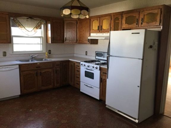 Must see only $79,000, offers 3 bedrooms and 1.5 baths. Nice sized living and dining room both have oak floors. Oversized detached double car garage.