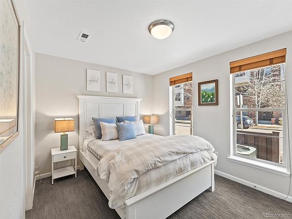This stunning end-unit townhome offers an unbeatable blend of style, convenience, and comfort, all just steps away from top-rated restaurants, shopping, and entertainment in the vibrant Belmar neighborhood. Whether you're heading into downtown Denver or escaping to the mountains, this location provides easy access in every direction. Upon entering the home, you will find a private lock-off suite on the first floor with the ability to have its own separate entrance. Head to the second level to find soaring ceilings, abundant natural light, and an open-concept main floor designed for both relaxing and entertaining. The spacious living area features a wall of south-facing windows, and a covered deck with sunshine year-round—perfect for morning coffee or evening BBQs. The open kitchen is a chef’s dream, featuring granite countertops, stainless steel appliances, plenty of cabinetry, and a large island with bar-top seating. Upstairs, the flex space provides endless possibilities—ideal for a home office, fitness area, or creative studio. The primary suite is a true retreat with a walk-in closet and en-suite five-piece bathroom, with the laundry closet conveniently located outside of your door. Additional highlights include a fire suppression system, whole-home humidifier, and a freshly painted exterior (2024). The attached two-car garage plus ample free, street parking make city living effortless. Experience the best of modern, low-maintenance living in one of Lakewood’s hottest neighborhoods—this townhome is a must-see!