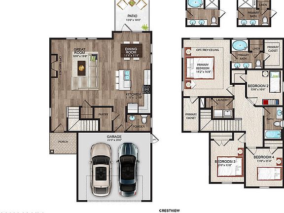 Savannah's most trusted local builder is proud to offer our Crestview plan. This home is a wonderful 4 bedroom new home under construction. Features large walk in pantry and a spacious kitchen. The kitchen is accented with granite tops and ceramic tile back splash. All kitchen appliances in stainless steel even includes the refrigerator. Upstairs is 4 bedrooms, master suite with tray ceiling Ever wish for more closet space? Your wish is my command, enjoy 2 walk in master closets of this home. 3 guest bedrooms all of good size. A separate laundry room with a linen closet for more storage.