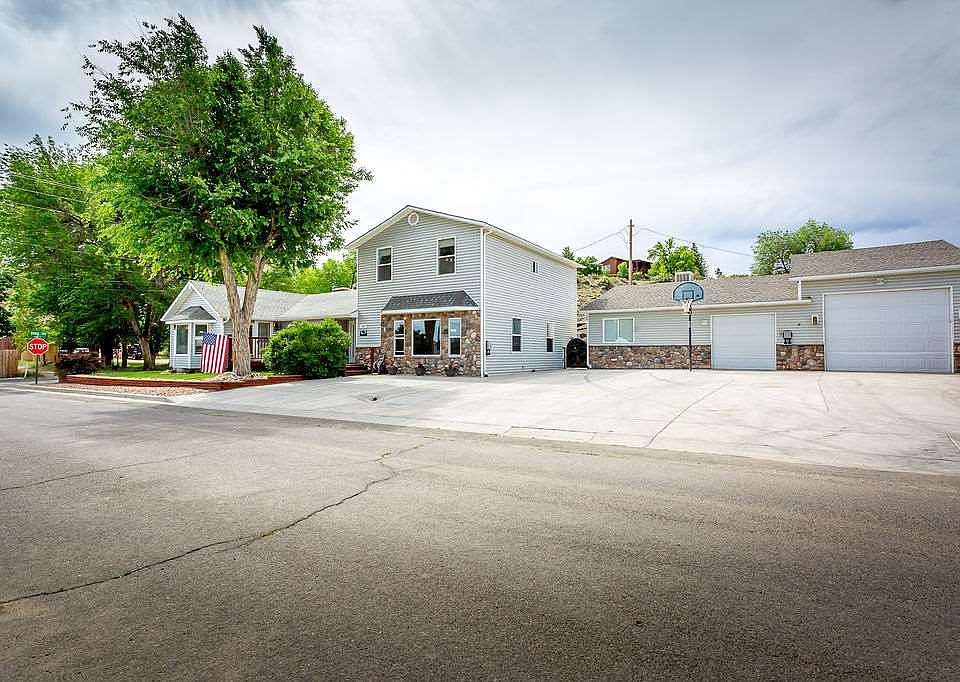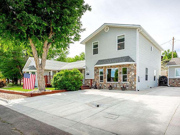 Located on a corner lot just up from the high school, this expansive home features multiple upgrades throughout and is highlighted by a 1575 square foot detached shop. From the quaint front deck, step inside to appreciate the vaulted ceilings, gas log fireplace and built-in entertainment wall of the homes formal living room. A generously-sized living room and dining room on the other side make this home ideal for entertaining and hosting. Upstairs, the 704 square foot master suite boasts an enormous walk-in closet and en-suite with tiled walk-in shower and dual shower heads. The detached 4 plus garage/shop features in-floor heating along with 200 amp service and an overhead garage door. Directly behind the backyard, a 0.75 empty lot can be purchased in conjunction to provide additional RV storage or building space. With too many bonuses to mention, this home is an amazing find.