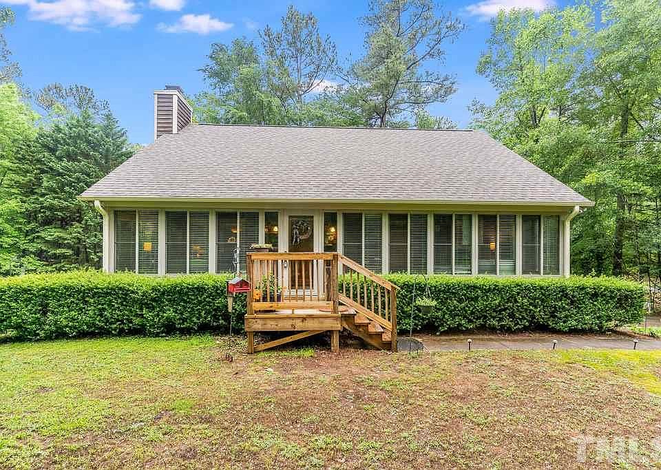 Amazing Lake Royale Ranch Home. Privacy and Comfort at its best. Amenities galore! Swim, boating and so much more! Covered porch converted to heated and cooled room, Living room with vaulted ceiling, stone surround fireplace, owner's suite has French doors that open out to the deck. Bamboo floors, breakfast area, kitchen island. Extended driveway.
