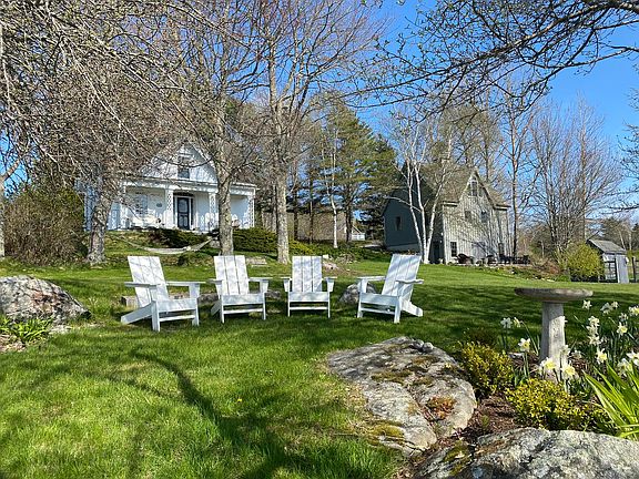 The magic of the sea will cast a spell of wonder and peace from every vantage point of westerly facing, beautifully landscaped property. Bring each day to a close with sunsets over the private 144 feet of private waterfront on Turkey Cove. Be inspired to do something or nothing at all. Lounge on the front porch, press your bear feet in the soft grass under the apple trees, enjoy conversations on the barn stone patio, pick away at the seaside garden, create in the studio, retreat to the library, or cook up a storm with friends and family in the eat-in kitchen. Whatever you choose, it just does not get more Maine than this place. The farmhouse has three bedrooms, 2.5 bathrooms, two living rooms and a quiet library. The Vermont Castings woodstove in the primary ensuite will keep you warm and cozy. The kitchen and dining area are connected, and the enclosed porch captures the outdoor light captivating the space. The barn has three stories including finished space on the top floor, studio and garage space on the main level and the bottom floor is set up as a family room but could be the workshop/studio of your dreams!