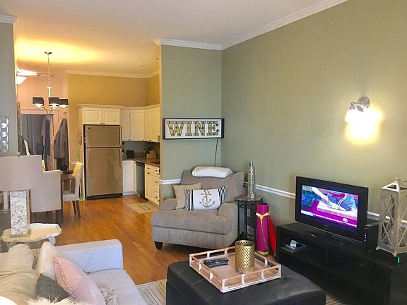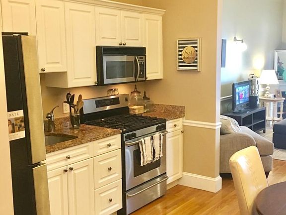 Rental Available Sept 15 (or sooner), Open floor plan in a quiet condo building. Kitchen with Stainless steel appliances and granite counters, hardwood floors throughout, living room with fireplace, slider to rear deck and private patio. 1 Car off street parking included, storage in basement, Wall unit A/C. Close to Broadway T (0.7 mile) 1 Year lease 1st, Last and security deposits No pets, no smoking Credit check and references required