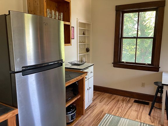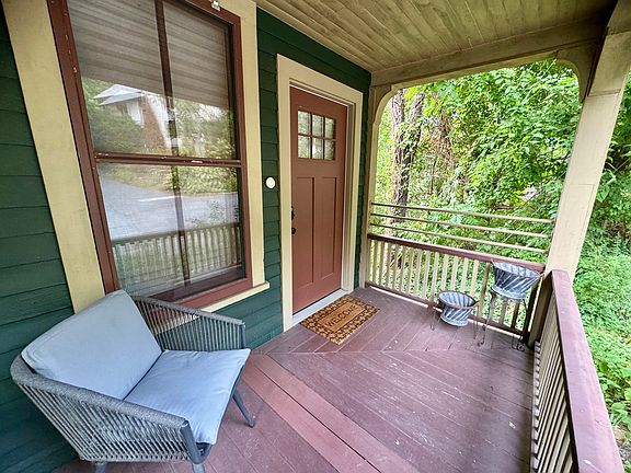 Lovely furnished 550 sq ft apartment in 1917 craftsman home, located in the beautiful Chicken Hill neighborhood. Features a full-sized kitchen (with balcony!), W/D, off-street parking and all utilities included. Walk to everything: RAD ( .5 mi), downtown (1.2 mi), West Asheville (1 mi), greenway & French Broad River (.2 mi), bus stop (.3 mi) and more. Nature, galleries, restaurants, cafes, & music venues all easy to access. Quiet, nice neighborhood, off-street parking, and loads of charm. This is a quiet home and neighborhood. Please no loud activities like playing music, singing, etc. Entire property (including outside) is non-smoking and non-vaping. Shared W/D, all utilities included. This is the middle apartment of a triplex. Sorry, no pets, no exceptions. Available as a month to month for $1,600. All utilities included. Shared W/D on premises.