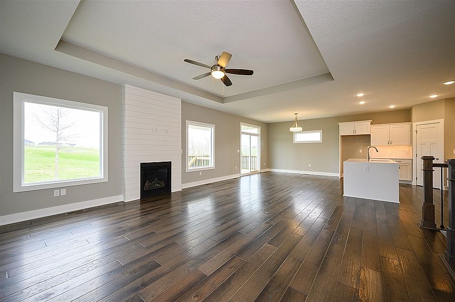 The best of both worlds community & privacy. A quick commute to downtown Des Moines, airport, or Jordan Creek by Hwy 5. Your open floor plan has hickory hardwood floors, a shiplap fireplace in the family room, & sliding glass doors to the covered deck views of Legacy Golf Course off the dinette. Your kitchen has white cabinets, white quartz counters & matching island, & slate gas stove for a clean look. In your owner's suite is a full tile shower & walk-in closet connected to the 1st floor laundry. You'll appreciate the mudroom off the 3-car garage as well. The finished lower level has a large flex room a walkout patio & wet bar additional room great for a home office or workout space. Cement board siding & a Ring Pro Doorbell system complete this great home. When you close on this home by July 30th, you'll receive Hubbell Homes' $5,000 Closing Bonus to make this house your home PLUS use our preferred lender & receive $1750 off closing costs