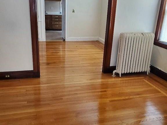 1st floor of a 2 family. Mostly hardwood floors. Bedroom floors just refinished. Gas stove and frig. Comes with a small bonus room ( office). Sun room. spacious unit. One cat only o.k. Driveway 2 cars tandem.