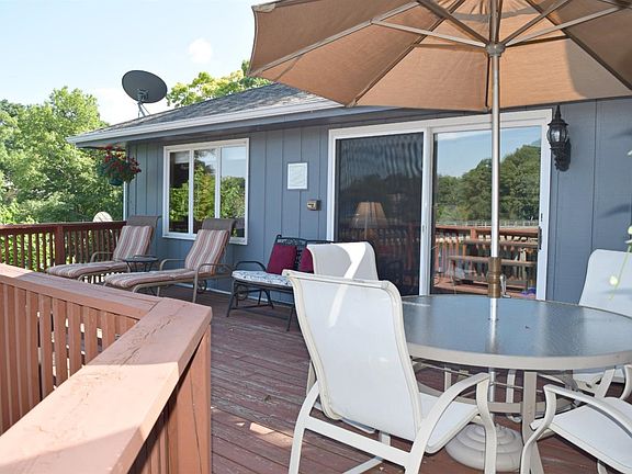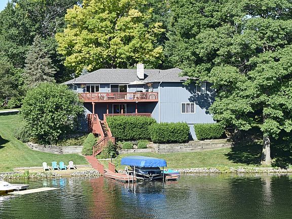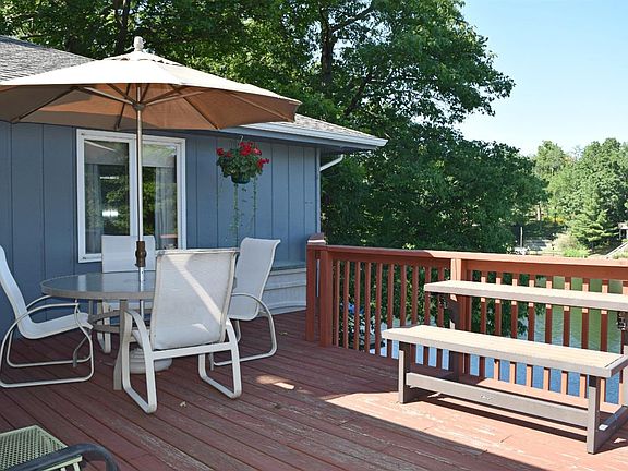 LAKEFRONT RANCH. Main floor has living room, dining room, kitchen open to family room with fireplace. 3 bedrooms on main level. Finished lower level family room with fireplace, office, 4th bedroom and large bathroom. Great Lake view. This home includes a boat dock with canopy and boat lift. Two levels of decks overlooking the lake. Don't miss the opportunity to see this well built home and add your own touches. Priced to sell.