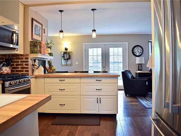Lovingly cared for, beautifully updated throughout. New within the last 5 years: furnace, tankless hot water heater, hardwood thruout entire first floor, kitchen, all baths, 2nd floor carpet. Large front deck with lots of seating room. Kitchen has extra wide peninsula with seating & pendant lighting & is open to cozy family room. French doors from family room lead to the 40' X 12' rear patio. Second floor laundry. Master bedroom has ensuite with large walk-in closet. All rooms are light & bright and have fresh current paint hues. Being a stone's throw away, you can walk to the town park & pool!