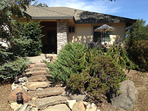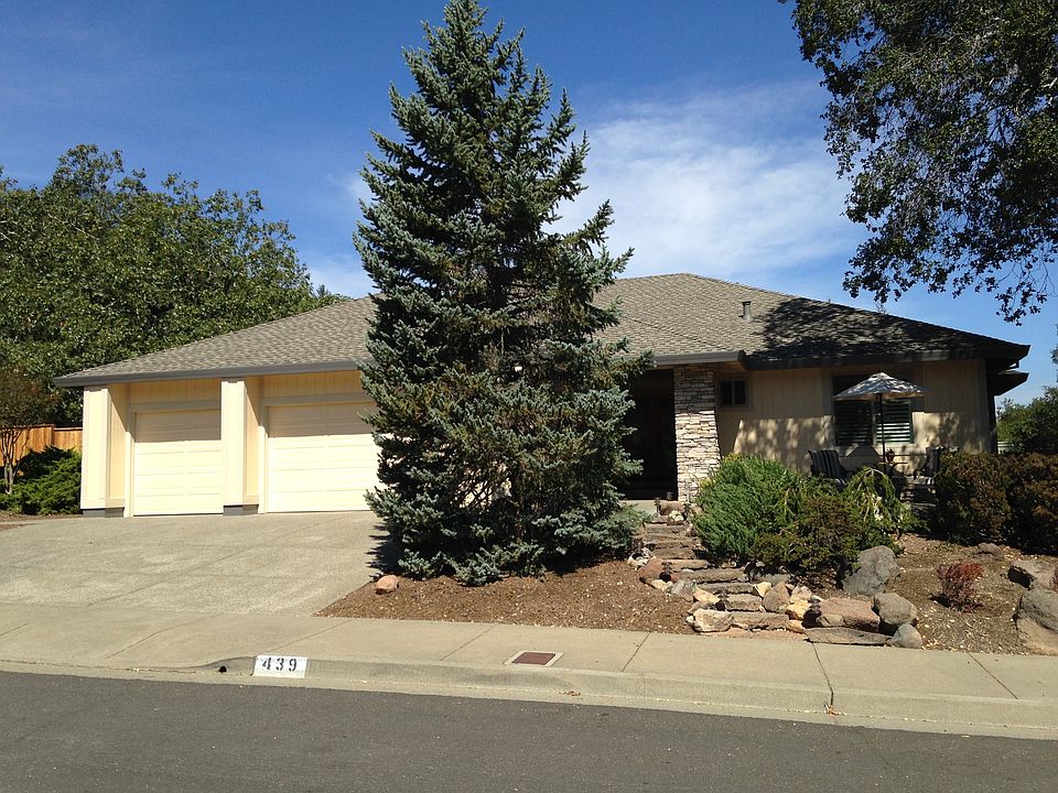 2015 total remodel of a Gallaher built Sugarloaf plan on a beautiful wooded and private lot, which backs to a seasonal creek in Oakmont, Santa Rosa's premiere Active Adult Community. This home was redone from top to bottom with tasteful and modern amenities. New 50 year roof, new double pane Milgard windows and sliders, new double entry leaded glass doors, African Paduak wood flooring throughout the home. All new kitchen with walls removed for open concept. Custom Alder wood cabinetry, newstainless steel appliances - Samsung counter depth refrigerator, Bosch dishwasher, LG microwave, GE gas Café range with double oven, Zephyr range hood, Newair 28 bottle wine cooler. Barricado granite counters with large island eating area that seats 6. Family room adjacent to open kitchen was expanded with permits by approximately 60 sq. ft. Guest and master baths redone with custom Alder wood vanities, tile floors and tiled tub/shower surround in guest bath. Guest bath has Euro style 3/8" glass sliding shower doors. Master bath has double sink vanity with extra dressing vanity, both bathrooms have Hawaiian Bordeaux granite. Spectacular travertine walled/floored walk-in shower with Grohe fixtures. Large linen closet. All baths have new low flow fixtures and toilets, lighting and ceiling fans. Other upgrades include expanded family room, recessed lighting, redone gas fireplace with marble surround and new glass doors/trim. Laundry room has new tile floor, washer and gas dryer with tons of space for storage in wall cabinets. Small office space as well. Garage has ladder attic access with extra storage. New paint in all rooms and outside house has been repainted as well. Outdoor landscaping redone with drip irrigation, stone/river rock pathways, redwood fencing and mulch. Both front and back have beautiful dry creek beds. Covered patios in back with extra bluestone sitting/sun area. Many mature shrubs and trees with large heritage Valley Oak tree for shade. Front has slate entry way and stamped concrete sitting area. Patio areas in back are done with Indian Raja multi-colored slate, approximately 500+ square feet. Woodley Place is an exceptional street within Oakmont away from traffic, a peaceful and sought after location to live in. Oakmont amenities include 2 golf courses, 3 rec centers with heated pools/spas, tennis, and more, only minutes away