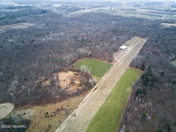 Incredible 77+ acre parcel featuring a 113 x 53 outbuilding and good mixture of wooded and tillable land. Previously this site was used as an airstrip and hangar. Rejuvenate the airstrip, build a home on one of many lovely sites, enjoy terrific hunting (many big bucks on camera and harvested), or all of the above. This parcel is home to abundant deer and turkeys. The owner has consistently taken a number of does each year and often see 20 deer per sit. In December, 2020, a mature 8 point (pictured) was tagged in the heart of the wooded section of the parcel. A small seasonal pond holds wood ducks, and flocks of turkeys roost on the parcel. The owner has made numerous improvements in timber, hinge cutting, food plots, treestands, etc. to further perfect the whitetail habitat. This is a rare opportunity for a world away that's so close to Grand Rapids.