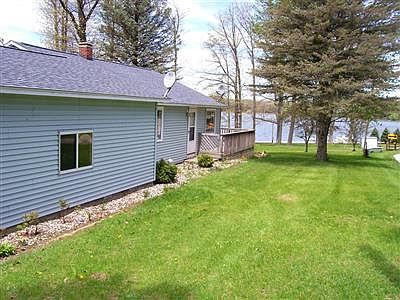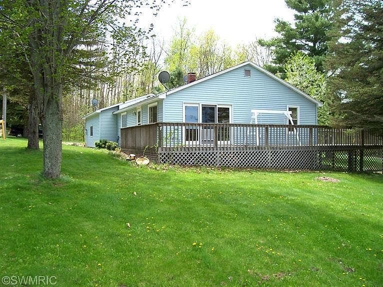 Gun Lake!!! Extraordinary 132 feet frontage on sandy walkout beach. Exceptional view of the all-sports lake. Enjoy fishing, boating, swimming and water sports. Great get-a-way home on a 1 acre wooded parcel. Peaceful quiet location. Great vacation or year round 2 possible 3 bedroom, 2 full bath home. Many updates to home in 2004 & newer roof in 2004. Spacious rooms, walkout lower level w/laundry, full bath and plumbed for 2nd kitchenette. Potential for large family room & 3rd bedroom. Newer furnace and new hot water heater. Newer pump & well. 600 sq. ft. (10 X 44 plus 10 X 14) wrap around deck overlooks the lake. Attached garage for boat & shed for other tools & toys. Dock included with property. Great property for entertaining. On the South side of Gun Lake. Large 13 X 23 area of yard is fenced. This lakefront home was appraised in August 2007 for $276,000. This property has been in the family for decades. Seller is really motivated.