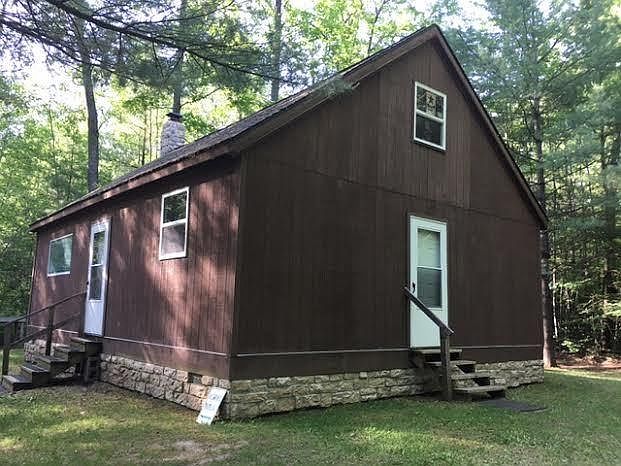 Secluded rustic one room cabin that is located on 20 acres in a pocket of private properties surrounded by Federal land near Curran, the Black Bear Capital of MI. Deer, bear and ruffled grouse on property. Two cleared areas for food plots for wildlife, 4 tree stands, 1 ground blind, built in food smoker, game washing table, two buck poles. Cabin was built in 2006 and what you see both inside and outside is remaining with purchase. Nearby are all-sport McCollum Lake and no-wake Crooked Lake for water activities. Acreage is accessed by Forest Service Road.