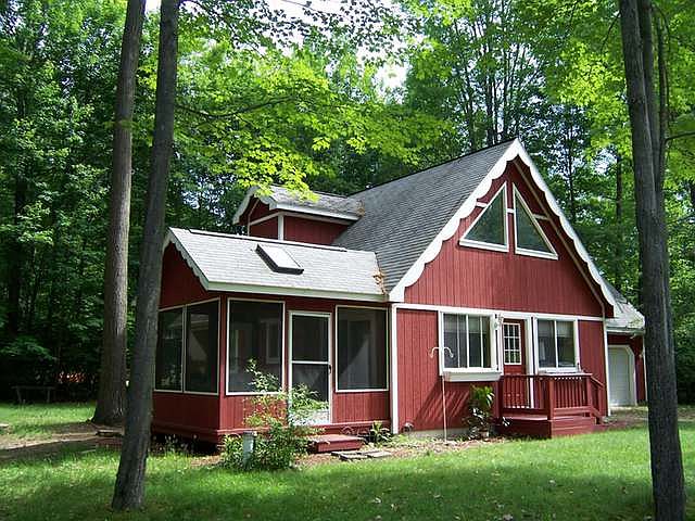 Original owner, Cozy Chalet 2 Bedroom +Loft, 2 bath and a bonus room with skylights, above the attached 2 car garage! Step out to the attached screened in porch off the dining room. A short walk to the Lakeside boat slip on Pristine Littlefield Lake.