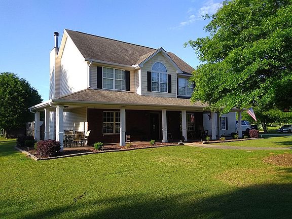 Great 4br 2.5 bath home with wrap around porch. Large bedrooms, Like new carpet, hand scraped hickory floor in living area and kitchen. Brick fireplace, covered back porch with small koi pond and separate gazebo. Fully fenced established pastures for horses with barn and run in shed for animals.
