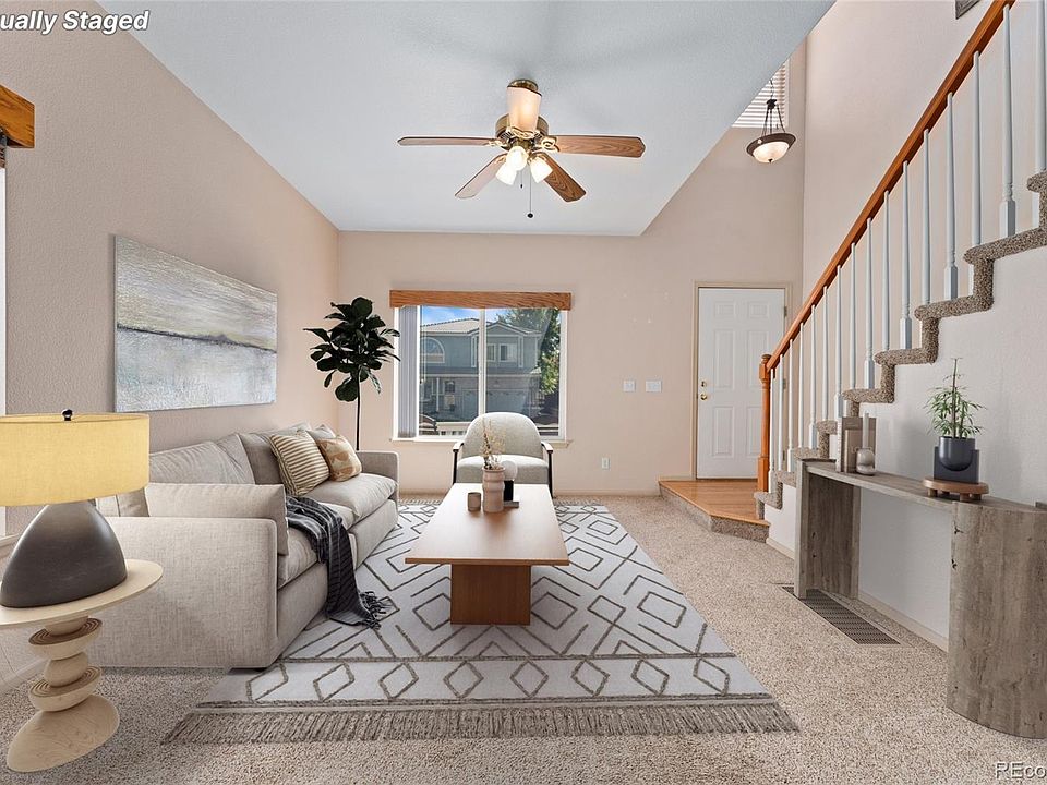 Cozy home in Highlands Ranch! Step inside and find a comfortable carpeted living room that sets a warm, inviting tone. The kitchen and formal dining area feature laminate wood-look flooring, equipped with white appliances and an island that offers extra prep space or seating. The main floor includes a laundry room and a half bathroom for convenience. Journey upstairs and find a versatile loft space and three bedrooms, with the primary bedroom boasting a walk-in closet and an ensuite bathroom for your privacy. The unfinished basement provides ample storage space or room to grow. The fenced backyard is complete with a deck and a lovely bench swing, perfect for relaxing. There’s plenty of space for gardening, plus a gazebo and a storage shed for your tools and equipment. Located in a great school district, this home is close to grocery stores, restaurants, coffee shops, and libraries. You’ll love the nearby parks and the extensive hiking and biking trails. As a resident of Highlands Ranch, you’ll have access to four community recreation centers through the HOA, offering a variety of amenities for everyone. This Highlands Ranch home is ready for you to make it your own!